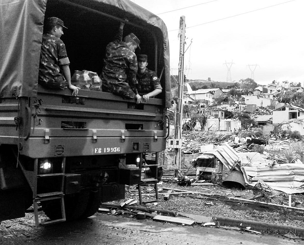 Exército, Corpo de Bombeiros e o setor de assistência social da prefeitura se concentraram na distribuição de kits compostos de água, produtos de higiene pessoal e de limpeza, cesta básica, colchão, travesseiro, lençol e cobertor. O material é entregue de casa em casa por oito equipes, nos seis bairros devastados pelo tornado.