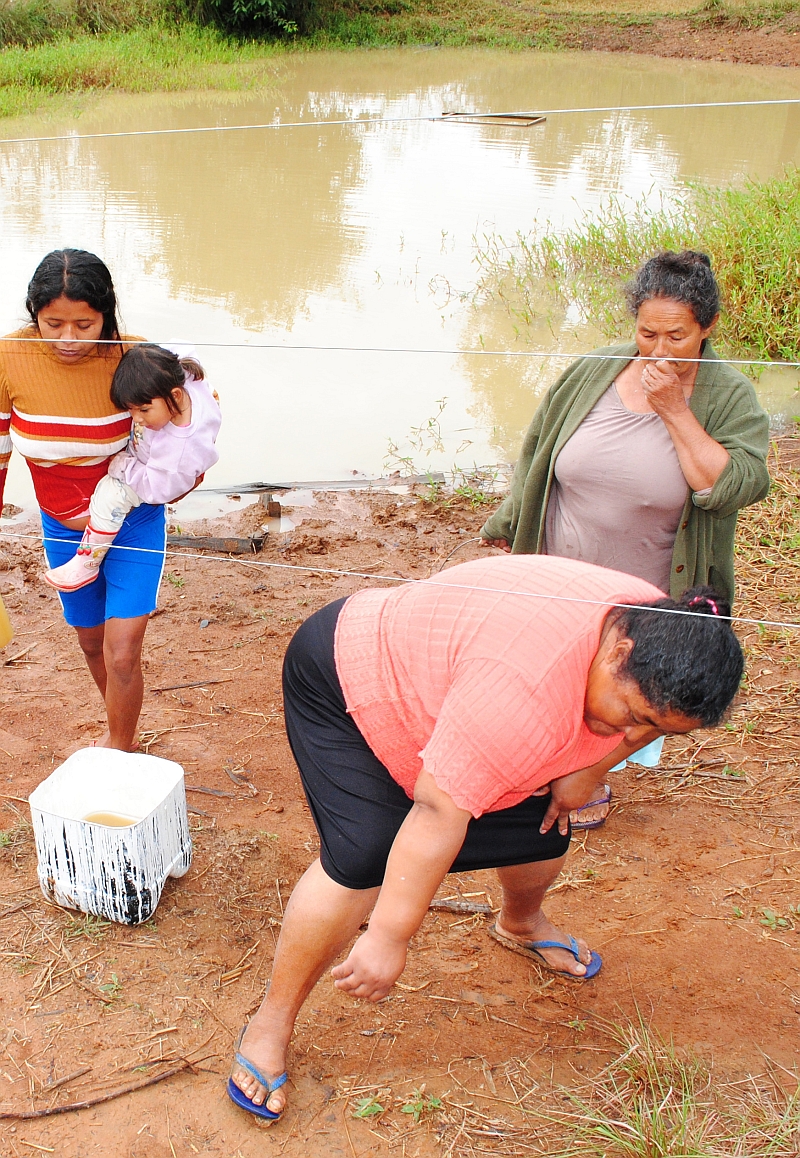 Os 170 índios da etnia tupi-guarani que vivem na Aldeia Indígena Pinhalzinho, entre os municípios de Tomazina e Guapirama, no Norte Pioneiro do Paraná, ficaram 16 dias sem água potável depois que a bomba do único poço artesiano que abastece a comunidade queimou. Nesse período, os índios tiveram de consumir água da chuva e de uma pequena lagoa que serve de bebedouro para animais. O fornecimento na aldeia só foi restabelecido na noite de quarta-feira. O cacique da tribo, Sebastião Mário Alves, conta que a comunidade teve que racionar a água porque havia risco de secar o reservatório improvisado. Segundo o líder indígena, sem água potável, as mulheres da aldeia tiveram de captar e armazenar em baldes e tambores improvisados a água turva e barrenta da represa, que depois foi usada para cozinhar e matar a sede das crianças. Nesse período, pelo menos cinco crianças tiveram diarreia e vômito, sintomas típicos do consumo de água sem tratamento. Índios adultos também apresentaram problemas na pele como escabiose (sarna) por causa da falta de banho. A falta de água potável levou ainda à suspensão das aulas para 32 alunos da Escola Indígena Yvy Porã, que fica dentro da aldeia. Alves explica que não foi a primeira vez que a aldeia ficou sem água, mas foi o mais longo período com as torneiras secas.