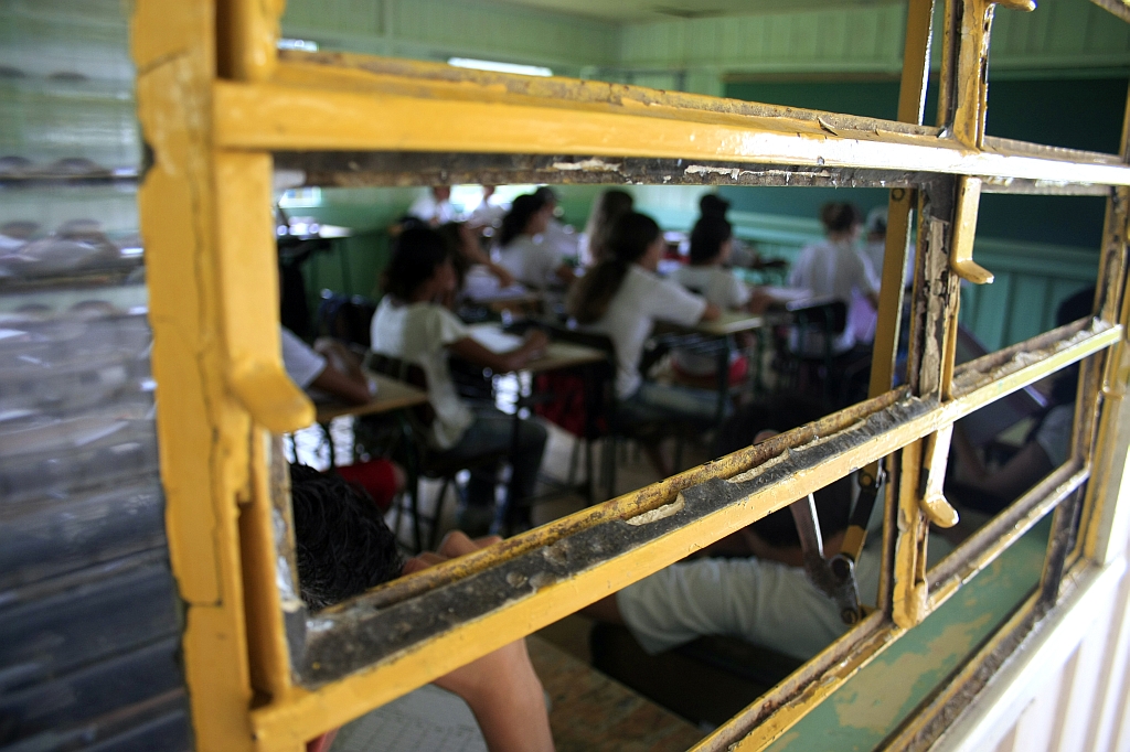 A escola está sem segurança e sem caseiro, o que facilita o vandalismo à noite e nos fins de semana. As vidraças, que foram trocadas no fim do ano passado, estão todas quebradas novamente e metade das carteiras está danificada.