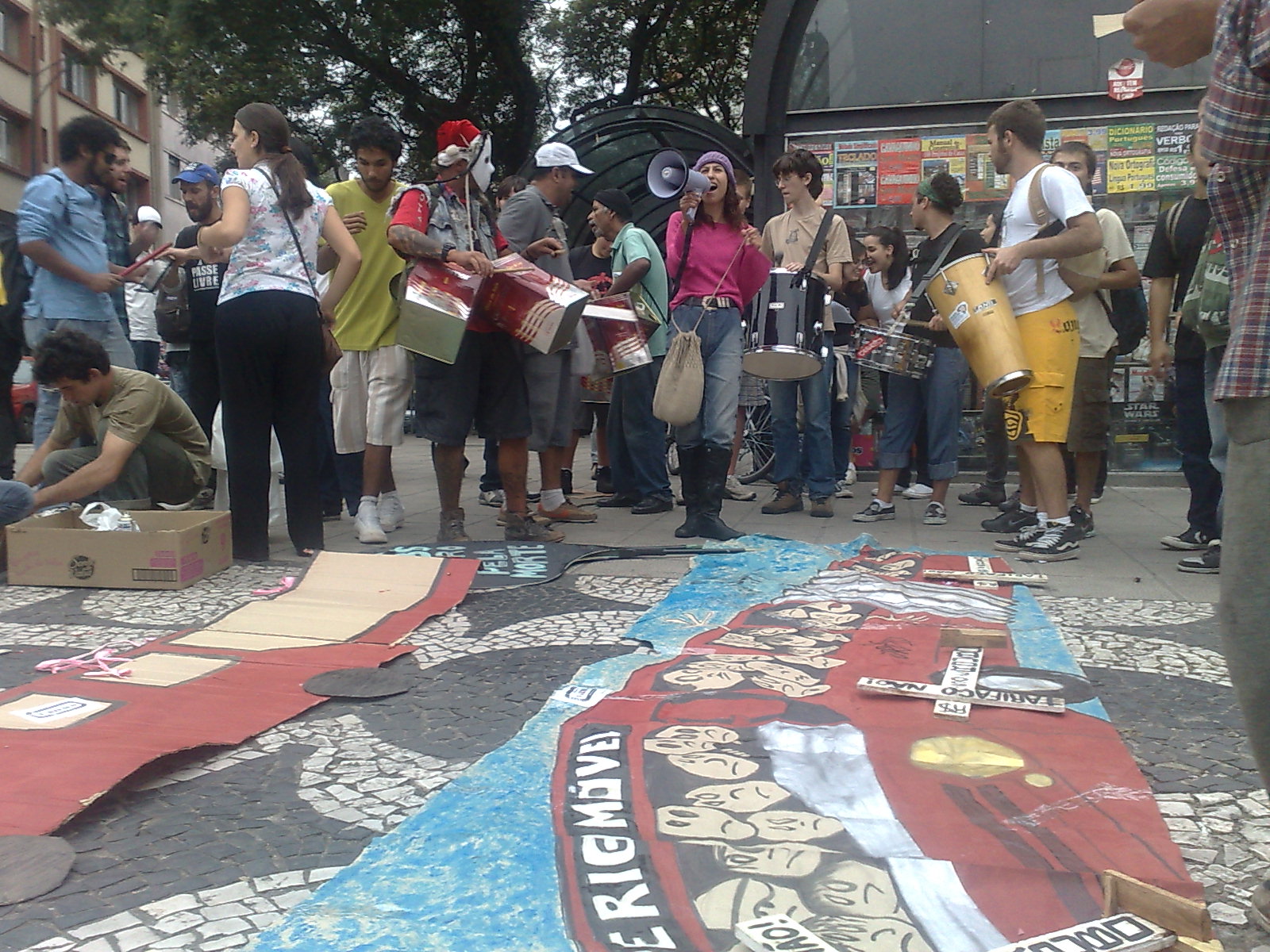 Manifestantes do movimento contra o aumento da tarifa de ônibus protestam na tarde desta quinta-feira (17) na Praça Tiradentes, em Curitiba. Este é o sexto ato planejado pelo grupo contra o aumento da tarifa este ano.
