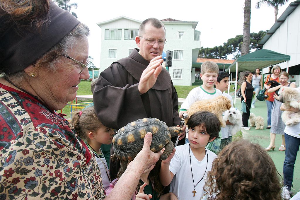 Celebrado há 15 anos pelo Colégio Bom Jesus Divina Providência, no Ahú, o Dia de São Francisco fez com que os alunos levassem seus animaizinhos para a aula na tarde de ontem. Cerca de 300 bichos de estimação da comunidade formaram fila para receber a bênção, oferecida pelo frei Jaime Spengler, vice-presidente da instituição de ensino. Segundo o frade, é importante as crianças conhecerem a história de São Francisco, que tratava toda criatura com respeito. "Pedra, planta, pessoa ou animal, para ele todos eram filhos de Deus e tinham que ser tratados como tal", lembra.