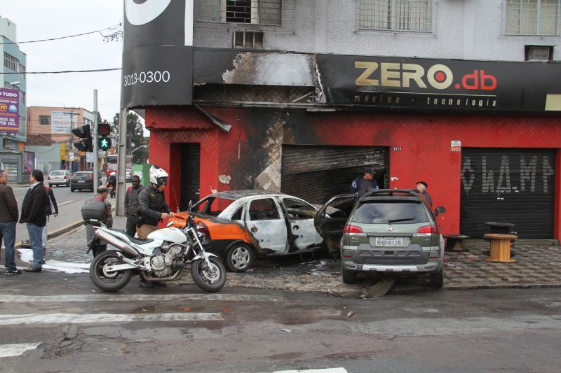 Com o impacto, os dois carros pararam apenas na calçada, próximo a uma loja que fica no local. A fachada foi destruída e uma porta danificada.