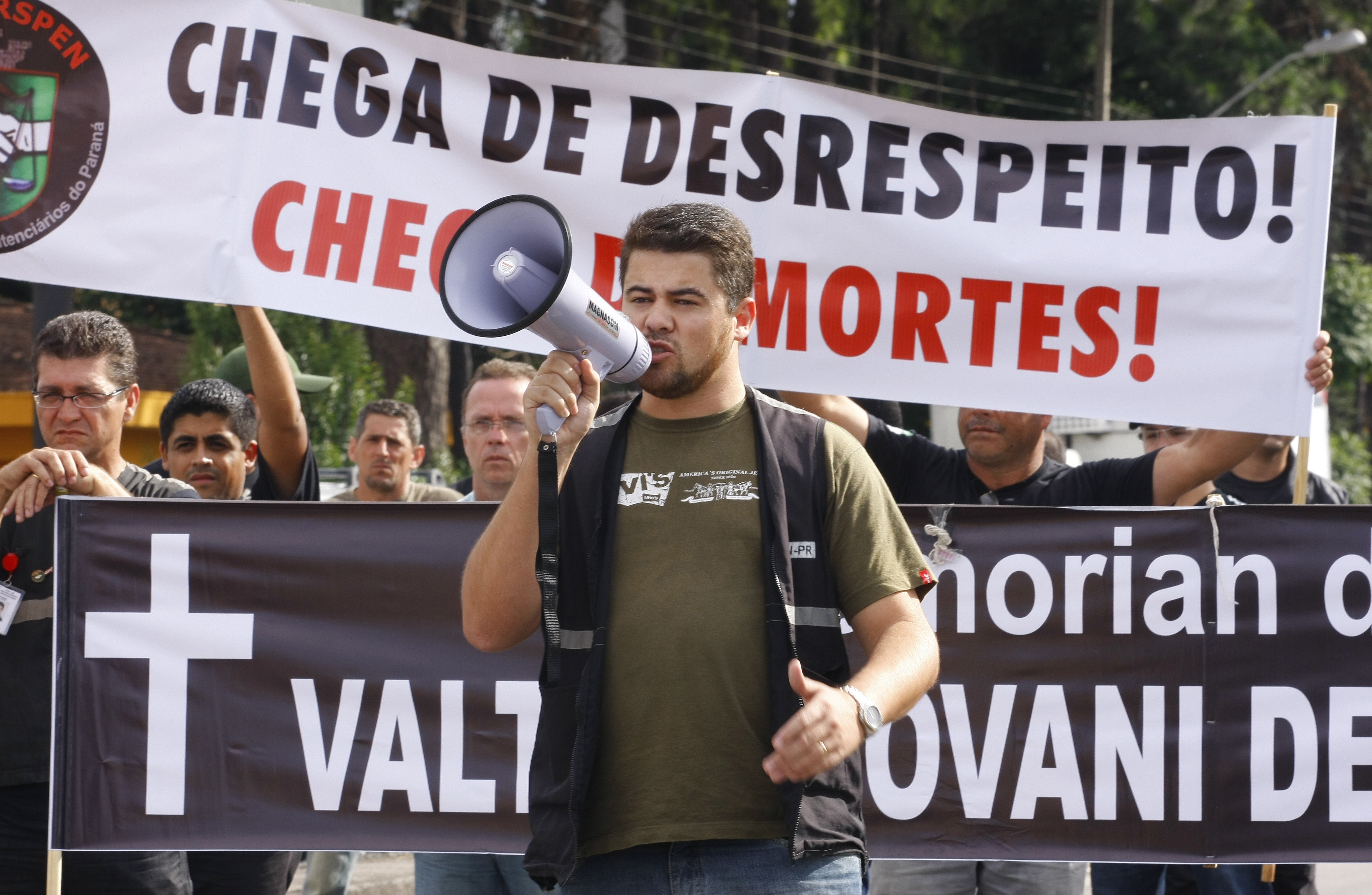 Liderados pelos agentes penitenciários, as mais de duzentas pessoas que presenciaram o sepultamento participaram do ato de protesto. Os integrantes da categoria da qual Pereira fazia parte fecharam por cinco minutos a Rua Bettega, situada nas imediações do cemitério. Com faixas e cartazes, eles reivindicaram medidas para melhorar as condições de trabalho dos agentes, como a ampliação do efetivo. "Agentes Penitenciários: categoria unida por mais trabalhadores", dizia uma das faixas. As cobranças foram reiteradas em um breve pronunciamento do vice-presidente do Sindicato dos Agentes Penitenciários do Paraná (Sindarspen),Antony Johnson.Investigações