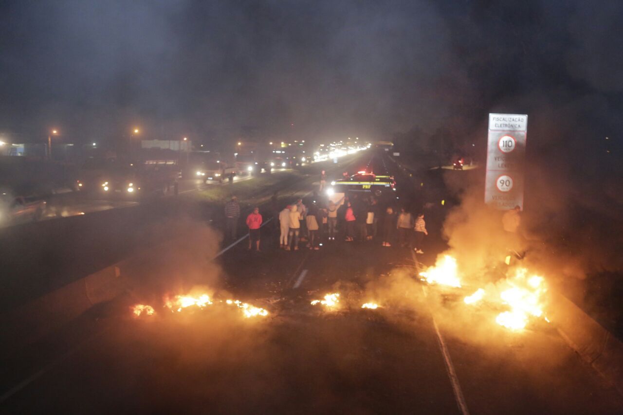 De acordo com a Polícia Rodoviária Federal (PRF), um grupo de aproximadamente 100 pessoas queimou pneus sobre o asfalto. Os bombeiros foram acionados, apagaram o fogo e fizeram a limpeza da pista.