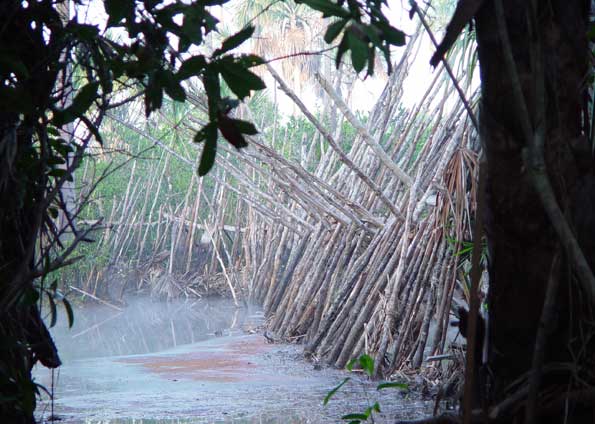 Na região estudada pelos cientistas com a ajuda de aparelhos de GPS e guias indígenas, os assentamentos parecem ter se organizado em duas "ligas" de "cidades" e vilas, cada uma com território de uns 250 quilômetros quadrados e população combinada de 50 mil pessoas. Além das muralhas (feitas com paliçadas), fossos e estradas, elas eram servidas por infraestrutura de pontes, diques para captura e manejo intensivo de peixes e canais usados para o transporte via canoa lado a lado com as estradas.