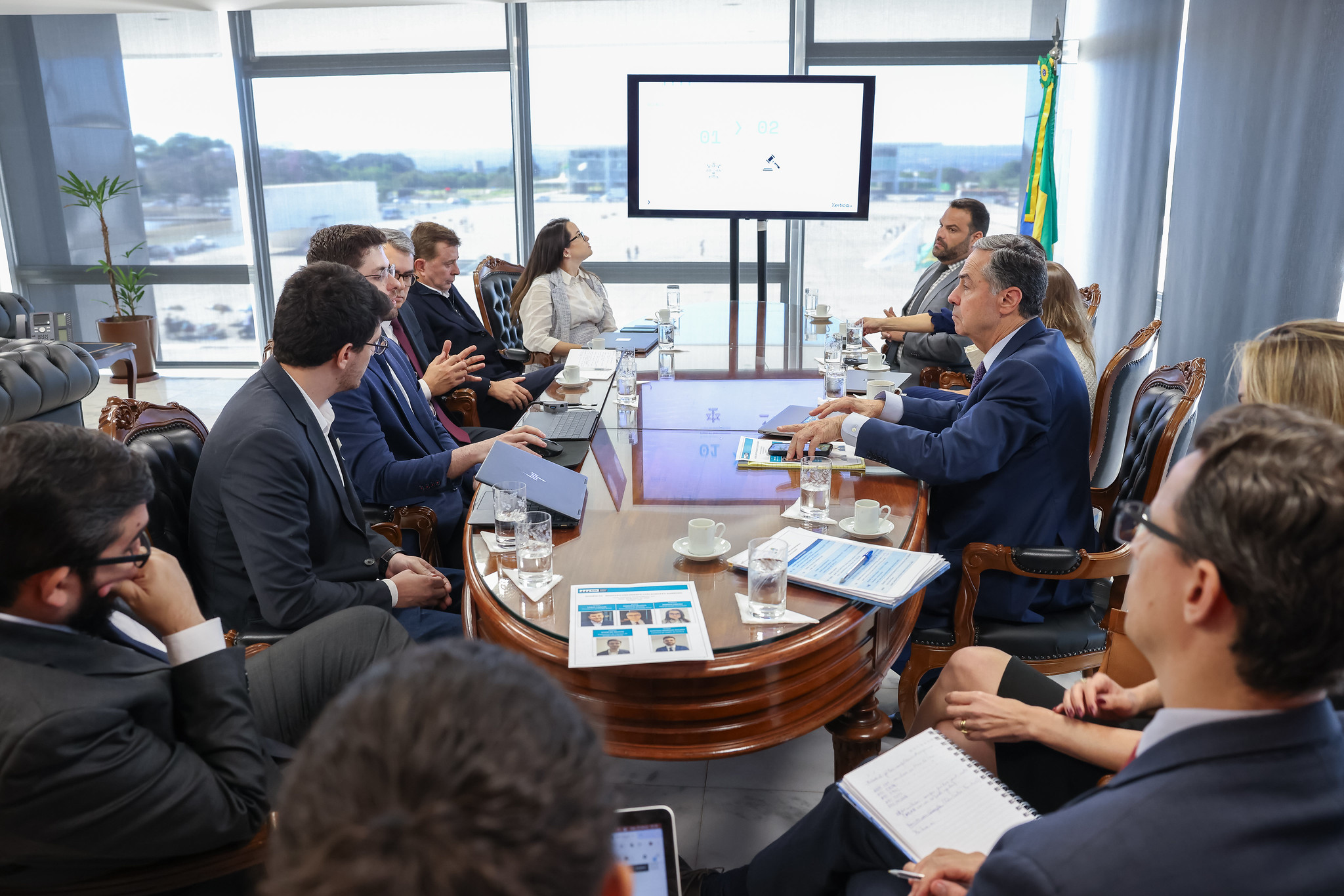 O presidente do Supremo Tribunal Federal (STF), Luís Roberto Barroso, se reuniu com o presidente da Google Brasil, Fábio Coelho, e com integrantes da equipe técnica da empresa para tratar sobre os avanços na criação de uma ferramenta para resumo de processos e peças processuais com uso da Inteligência Artificial (IA).