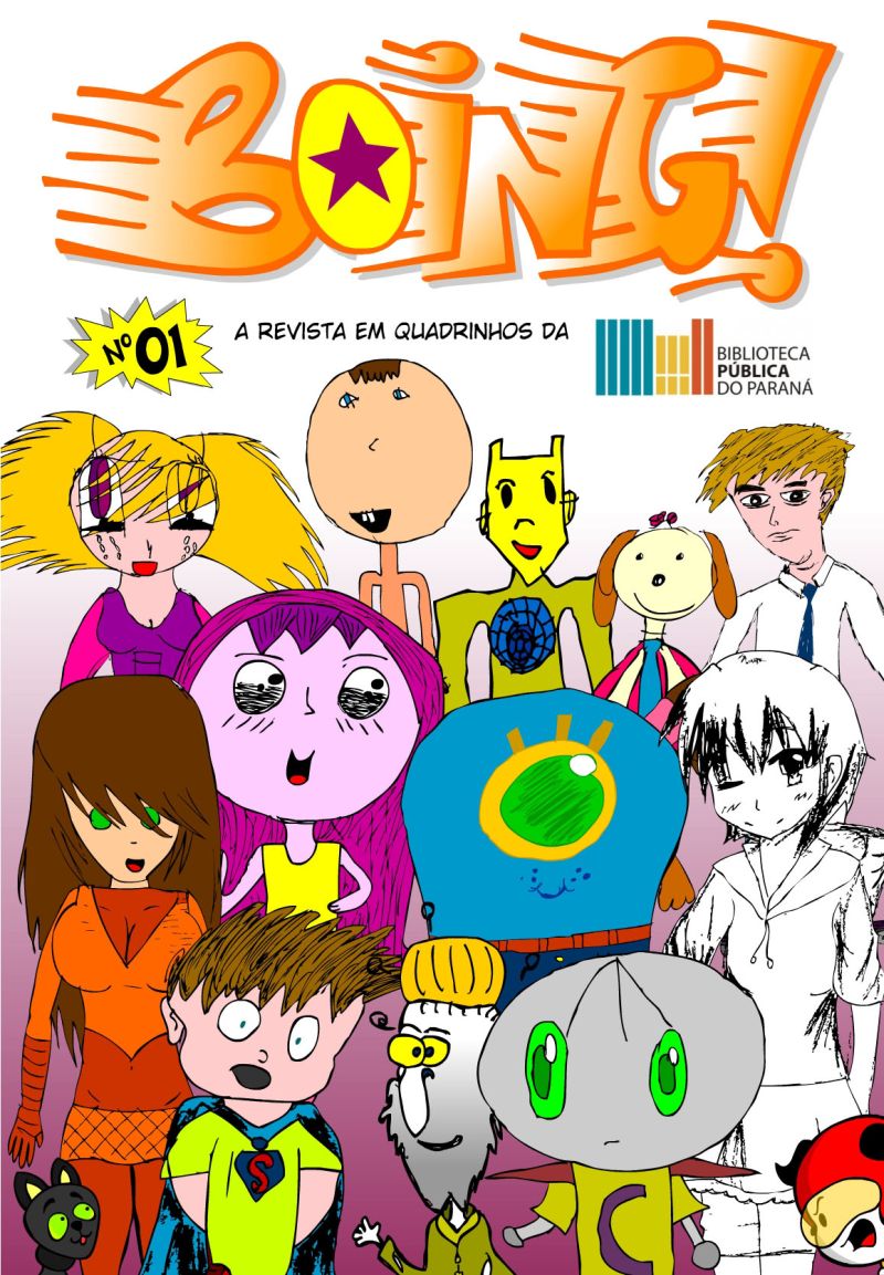 Neste sábado, a Biblioteca Pública do Paraná (BPP), em Curitiba, promove o lançamento do gibi Bóing (foto). A publicação que será distribuída gratuitamente reúne as melhores histórias em quadrinhos da primeira turma do curso de HQ da Seção Infantil da BPP. No evento, que acontece no auditório Paul Garfunkel, a partir das 10 horas, também haverá bate-papo com o professor do curso de HQ, Rodrigo Belato, e o escritor Fábio Yabu.