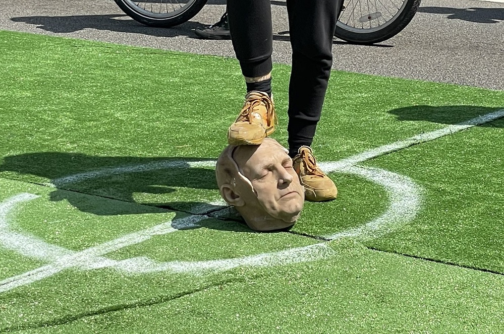 O coletivo Indeclive utilizou, mais uma vez, uma réplica de silicone da cabeça do presidente Jair Bolsonaro (PL) em um evento de protesto contra o governo, neste domingo (21). No ato, a reprodução foi utilizada como bola em um jogo de futebol em São Paulo, de forma similar à encenação de vídeo produzido pelo mesmo grupo, em setembro de 2020.