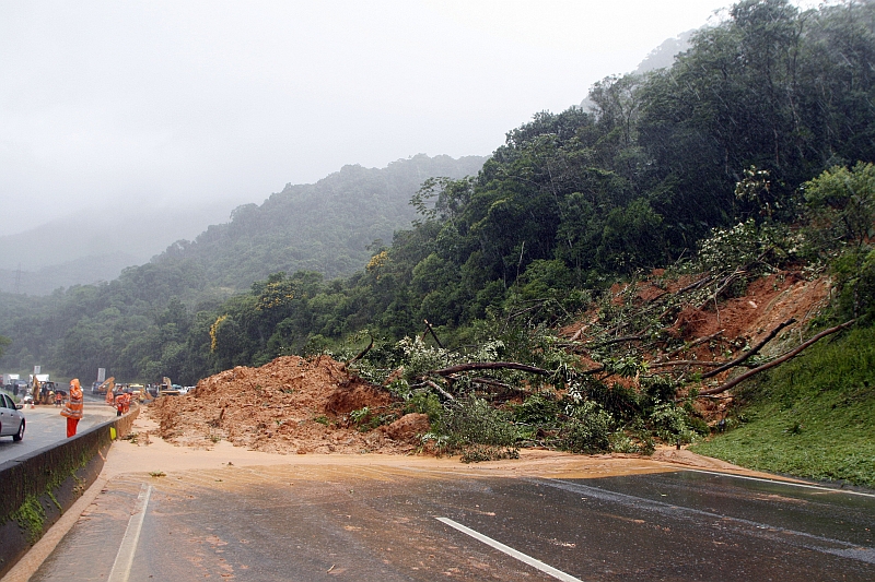 Na BR-376, um deslizamento de terra bloqueou os dois sentidos do quilômetro 668, na região da Curva da Santa. Por volta das 16 horas, o congestionamento na região chegou a 25 quilômetros e os motoristas foram orientados a fazer retorno. A PRF montou um posto no quilômetro 632 para avisar os condutores que vinham de Curitiba sobre a interdição.