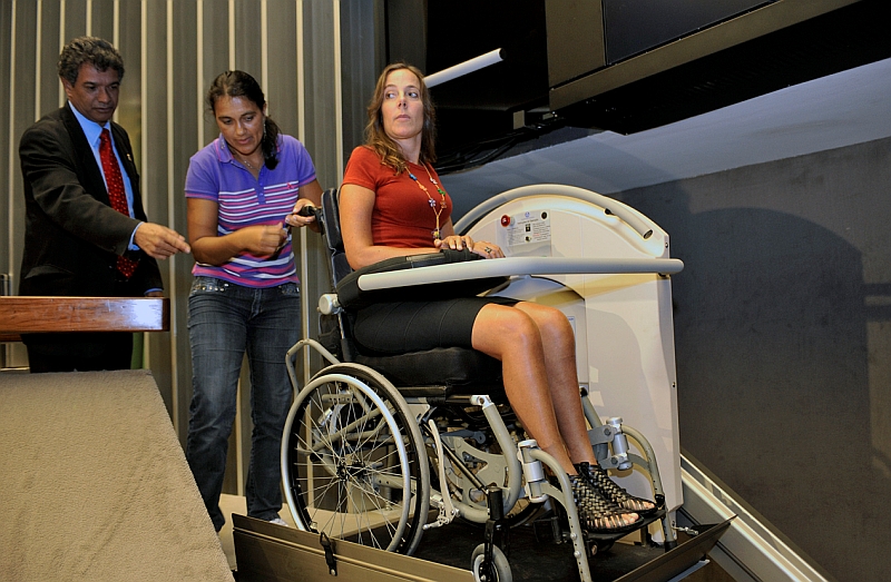 A deputada federal Mara Gabrilli (PSDB-SP) ficou presa por duas horas no interior de um avião na noite de quarta-feira no Aeroporto Internacional de Guarulhos, na Grande São Paulo, após se recusar a sair da aeronave sem o equipamento adequado para o desembarque de cadeirantes. A deputada é tetraplégica.Gabrilli estava no voo 3563 da TAM, que vinha de Brasília e chegou por volta das 21 horas de quarta-feira em Guarulhos. O avião parou em posição remota no interior do aeroporto, fora das áreas de fingers (passarelas que ligam os portões de embarque às aeronaves). Em casos como esse, o desembarque de passageiros com mobilidade reduzida deve ser feito com ambulift (uma espécie de carrinho com elevador).Segundo a deputada, apenas em terra a TAM informou que os aparelhos da empresa e da Infraero estavam quebrados e que ela seria carregada por um dos comissários para fora da aeronave. "Bati o pé e disse que eu não iria. Chovia forte no momento e estou com tosse. O risco é muito grande para uma pessoa como eu e o aeroporto deve ter os equipamentos necessários para estes casos", afirma Gabrilli.