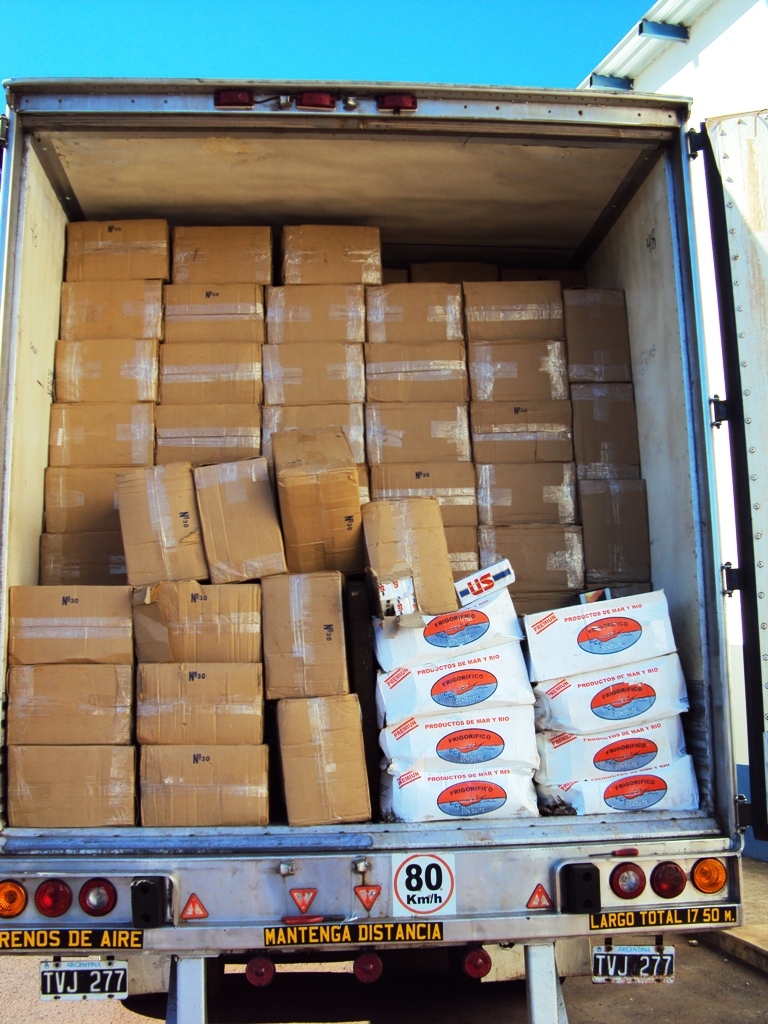 Uma carga de 50 mil pacotes de cigarros contrabandeados foi apreendida na manhã desta segunda-feira (2) pela Polícia Federal (PF) em Cascavel, no Oeste do Paraná. O produto era transportado em um caminhão-furgão com placas da Argentina. Segundo nota divulgada pela PF, o material estava escondido atrás de caixas de peixes.