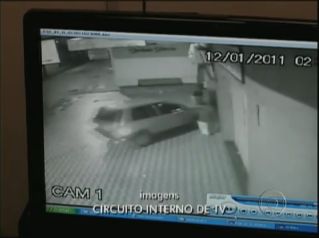 Bandidos usaram um carro para arrombar uma joalheria, nesta quarta-feira (12), em Montes Claros, na região Norte de Minas Gerais. De acordo com a polícia, uma câmera de segurança do programa Olho Vivo registrou o assalto.