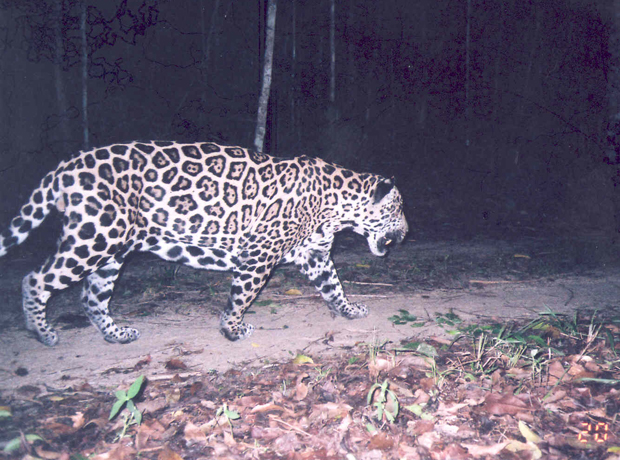 Em outra parte da reserva, câmera registra outro exemplar da espécie. Os nove animais são consideradas as últimas onças-pintadas que vivem em ambiente natural no Espírito Santo