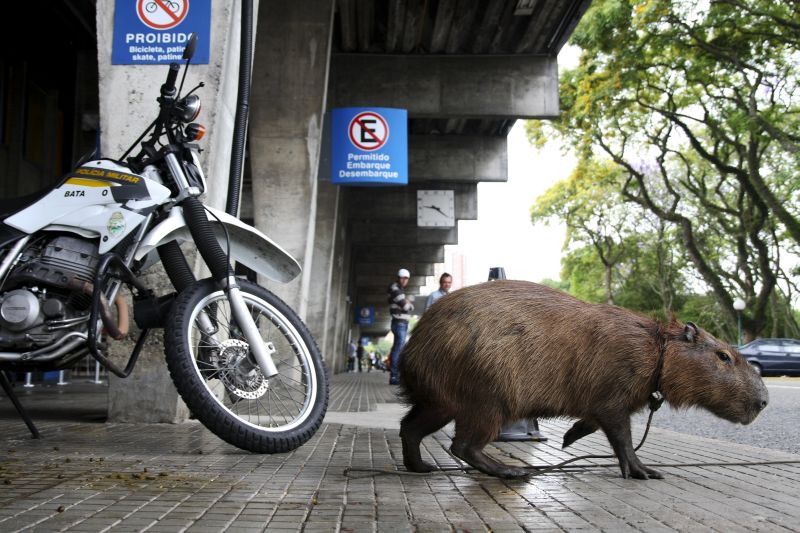 Uma das aproximadamente 200 capivaras que vivem em áreas públicas de Curitiba apareceu ontem na Rodoferroviária. O animal foi avistado de madrugada e foi isolado até que, pouco depois das 9 horas, foi capturado pela Polícia Ambiental. Policiais e biólogos suspeitam que o roedor saiu do Rio Belém, que passa a cerca de 300 metros do local, e seguiu pela tubulação de esgoto até ser atraído pelas luzes do local. A capivara foi levada ao Centro de Triagem de Animais Silvestres (Cetas), em Tijucas do Sul, na Região Metropolitana de Curitiba, para exames.