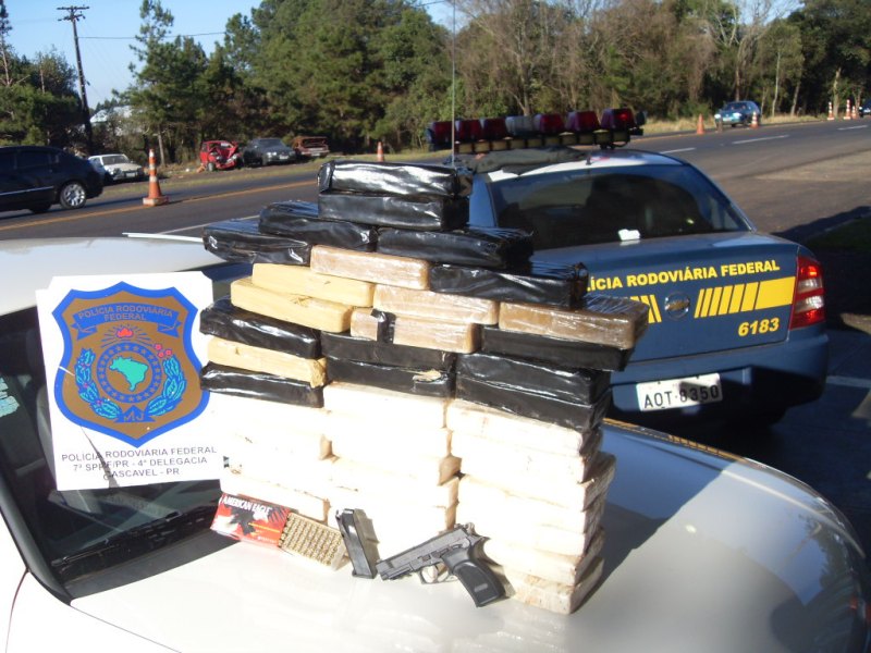De acordo com a PRF, o veículo estava recheado com 20 quilos de crack e 21 de pasta base de cocaína. Também foi encontrada uma pistola calibre 9mm, de uso restrito e fabricada na Argentina, além de mais 50 munições com o mesmo calibre. Todos os produtos estavam nas laterais do Gol.