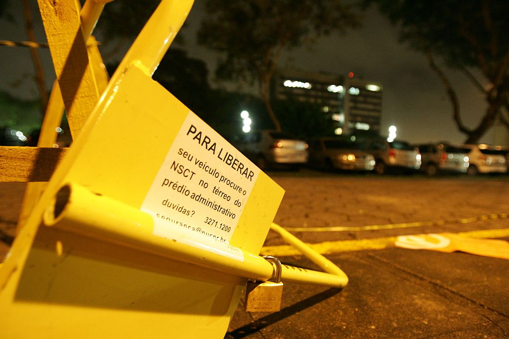 O aluno da Pontifícia Universidade Católica do Paraná (PUC-PR), que estacionar o carro em local proibido ou irregular (como canteiros e rotatórias), corre o risco de ter a roda do carro bloqueada por uma trava. A punição começou na semana passada e já virou assunto recorrente nos corredores da instituição. Se um automóvel é estacionado de modo que tranque a saída de um outro, por exemplo, monitores de trânsito da universidade vão até o veículo "infrator", colocam uma trava na roda e um cartaz com os seguintes dizeres: "você estacionou irregularmente. Seu veículo está bloqueado; para liberar procure o NSCT no prédio administrativo." Este tipo de punição é comum nos Estados Unidos e lá é feita por uma autoridade de trânsito mas, no Brasil, a medida é questionável.