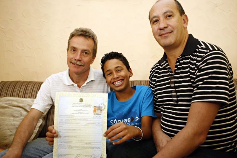 A partir daí, o casal procurou a Vara da Infância e Juventude de Curitiba. Eles queriam a adoção conjunta, por entenderem que dessa forma garantiriam segurança ao filho, principalmente em caso de falecimento. "Seria mais fácil, claro, que apenas um de nós adotasse a criança, e nós vivêssemos juntos. Mas decidimos garantir legalmente os direitos da criança", conta. Por ser o primeiro caso de adoção conjunta por um casal homoafetivo na Vara da Infância de Curitiba, o órgão levou três anos para proferir a sentença: os dois só poderiam adotar meninas, e desde que elas tivessem mais de 12 anos.