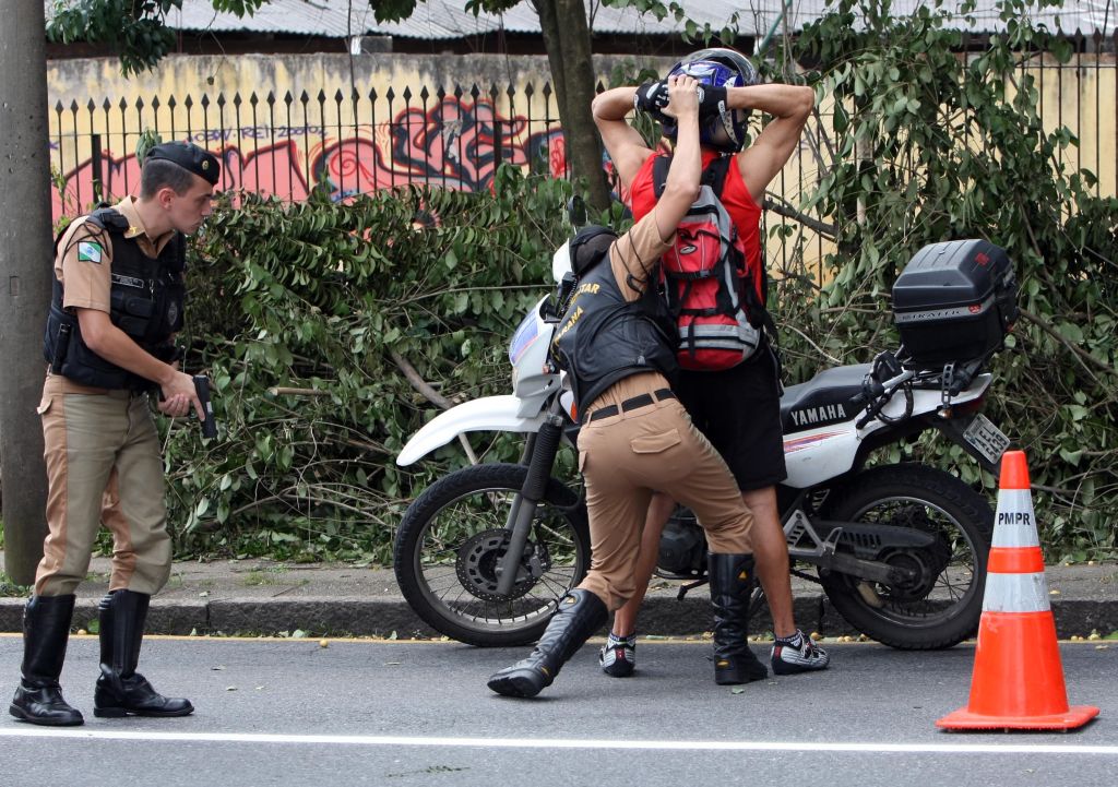 O professor de Educação Física Jair Luís Pissolato, 39 anos, reclamou da abordagem. Segundo ele, o policial o agrediu no momento em que desceu da moto. "Só comentei que estava atrasado e ele veio com uma agressão", afirmou. Os motoqueiros abordados relataram que estavam parados no local havia pelo menos uma hora. O capitão Bayer não comentou a suposta agressão. "Ele pode ir ao batalhão e relatar o fato", disse.
