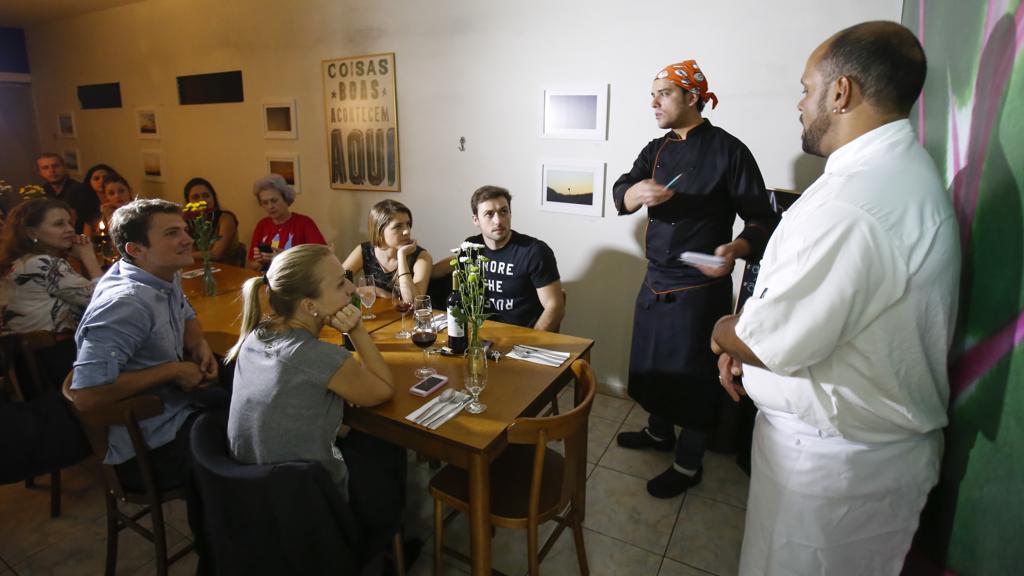 Chefs de cozinha de Curitiba abrem suas casas e oferecem refeições em ambiente informal e aconchegante. Em torno da comida, pessoas trocam experiências e criam laços de amizade.