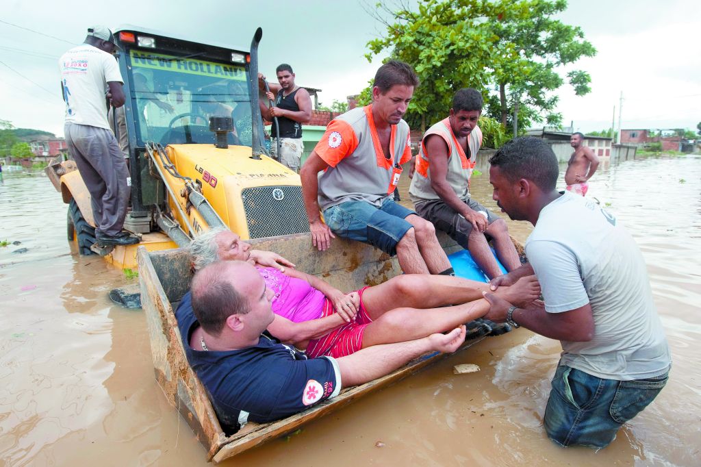 Em outros pontos alagados, cenas de desespero se repetiam. Para evitar o contato com a água suja, moradores tentavam se equilibrar sobre qualquer objeto que flutuasse. Geladeiras, banheiras e pedaços de madeira serviam de abrigo até a chegada de socorro. Até a pá de um trator foi usada pelos bombeiros para resgatar uma mulher cega em Belford Roxo.