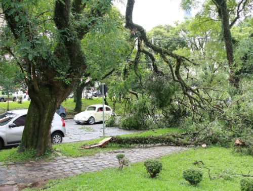 De acordo com o Simepar, um núcleo de chuva, pequeno mas forte, está sob a cidade. Também no início da tarde, em Ponta Grossa, nos Campos Gerais, um núcleo de tempestade trouxe pancada de chuva forte e vento de 60 km/h. Uma árvore caiu sobre um veículo estacionado. Uma academia de ginástica teria ficado destelhada.
