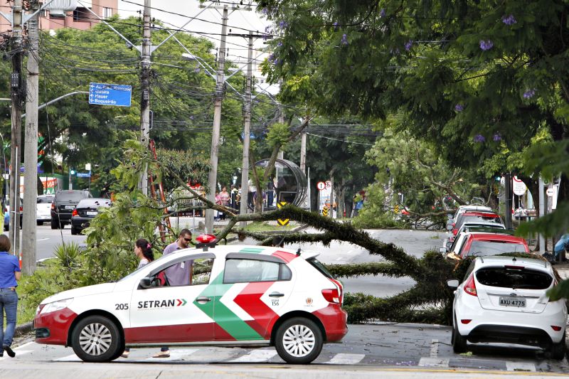 A chuva, que começou por volta de 14h30, também causou o desligamento de vários semáforos ao longo da Avenida Marechal Floriano Peixoto, sobretudo na região central da capital. Várias árvores caíram com o temporal. Uma delas, localizada na Avenida Iguaçu, esquina com a Marechal, interditou parcialmente a via e o cruzamento com a Rua Desembargador Westphalen.