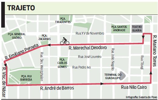 No dia 23, o Circuito Ciclofaixa poderá ser feito das 8 h às 16 h, com saída da Rua XV, na esquina com a Mariano Torres. O circuito passará pelas ruas XV de Novembro; Marechal Deodoro; Emiliano Perneta; Visconde de Nácar; André de Barros e Mariano Torres, destacando cenários históricos e culturais de Curitiba. O projeto também prevê a implantação de novos circuitos de passeio ciclístico pela cidade.