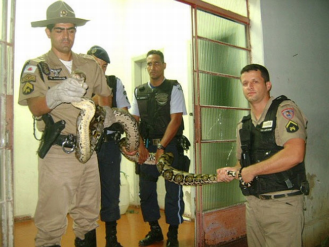 Uma cobra píton com cerca de quatro metros foi capturada na noite desta quarta-feira (24) no muro de uma casa em Contagem na Região Metropolitana de BH. Segundo a Polícia Militar do Meio Ambiente, o réptil que não pertence a fauna brasileira teria fugido do cativeiro.Ainda segundo os militares, a cobra estava bem e sem nenhuma lesão. Ela foi encontrada por guardas municipais de Contagem que acionaram a polícia do meio ambiente para fazer a captura.