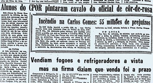 Na segunda manchete da Tribuna, a traquinagem de que o capitão do CPOR não gostou: “Alunos do CPOR pintaram cavalo do oficial de cor-de-rosa”.