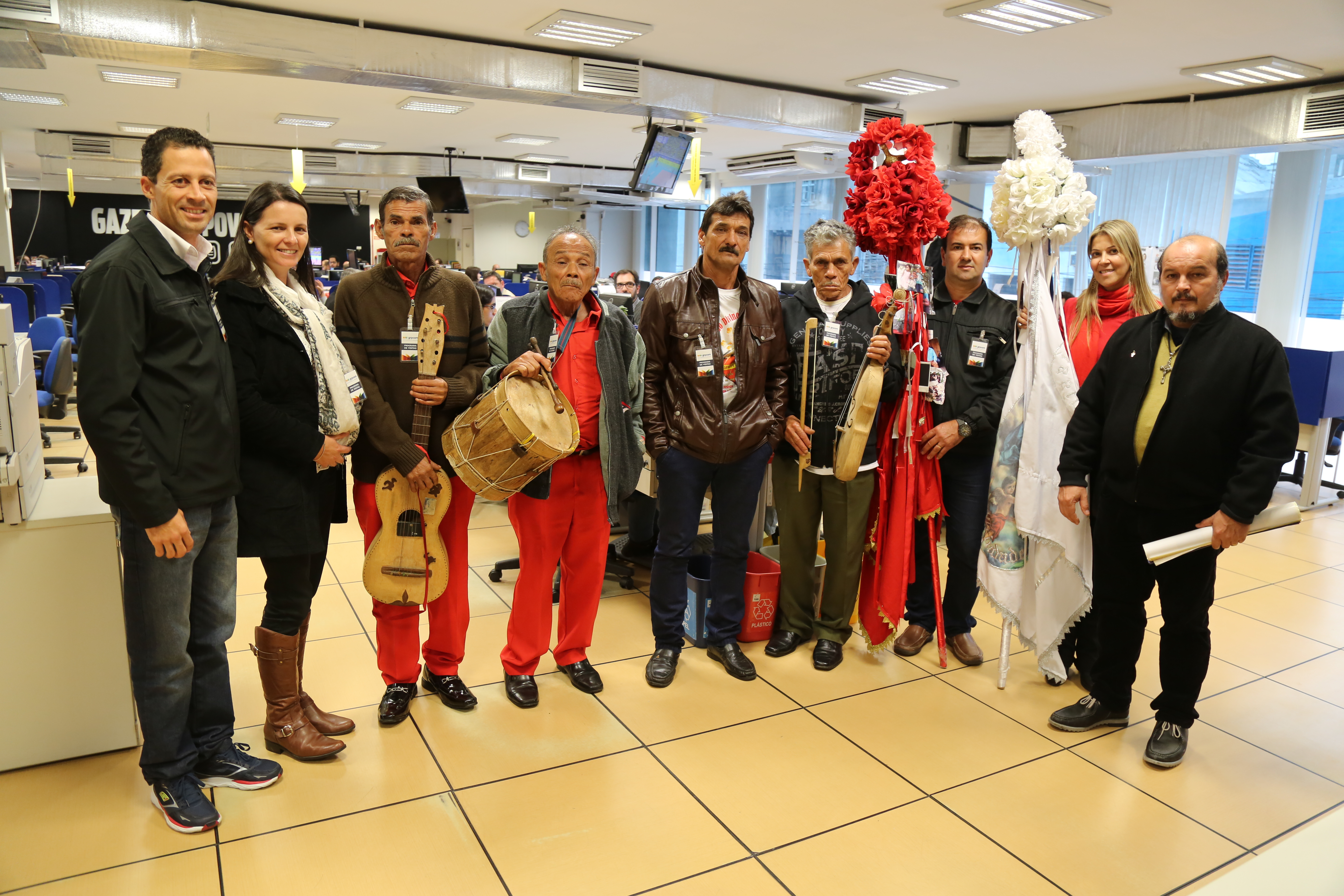 Quatro foliões, dois casais festeiros e um ministro da Igreja Católica formam a comitiva da Festa do Divino Espírito Santo de Guaratuba que visitou a redação da Gazeta do Povo (foto) na última semana. Mais do que a festa, o grupo divulga a tradição da segunda maior celebração “do Divino”, como são conhecidas as festas tradicionais dos litorais do Paraná e de Santa Catarina, fica atrás apenas de Paranaguá. As celebrações começaram em 3 de maio, dia da Santa Cruz, quando os foliões passaram de casa em casa levando músicas e bandeiras, na região rural da cidade. “Trazendo as bênçãos do Divino” é o canto entoado pelo grupo: Edival Alves (vocal), acompanhado da viola de Jorge Tavares, do tambor de Elói Silva e da tradicional rabeca nas mãos de Abel Cordeiro. A festa mesmo vai de 10 a 19 de julho com atrações religiosas e musicais. Um dos destaques será a novena do Padre Robson, no domingo (12), que será transmitida ao vivo para o Brasil inteiro, pela Rede Vida. A programação completa está disponível no sitewww.paroquiaguaratuba.com.br
