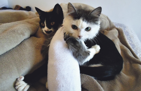 Também em Ponta Grossa, a SOS Bichos, fundada em 2011, vende camisetas, sorteia brindes entre os colaboradores e está montando um calendário com fotos de animais resgatados e adotados. Uma das estrelas é a gata Cindy (a primeira da foto). Ela teve as patas traseiras amputadas após ser atropelada e abandonada ferida quando ainda era filhote. Uma voluntária entregou a gatinha à SOS Bichos, que intermediou a adoção feita por Andresa Scaramella. Hoje Cindy vive com outros amigos bichos adotados por Andresa, como a gatinha Milly. Segundo a presidente da ONG, Maria José Silveira, Ponta Grossa tem cerca de 36 mil animais nas ruas.