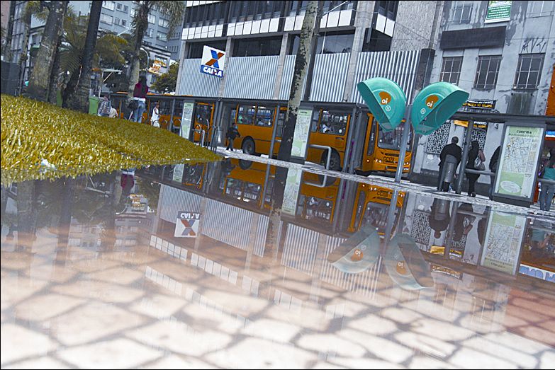 A trégua foi de poucos dias, período em que o calor chegou a níveis preocupantes. A chuva voltou a "bater ponto" todas as tardes e noites. O curitibano quase nem liga mais, e o guarda-chuva é componente obrigatório do vestuário cotidiano. Mas uma coisa que não se pode negar é que, ao lado dos problemas que causa, a chuvarada proporciona imagens bonitas como a da foto, captada dia desses. A água acumulada na praça reflete o ônibus, os prédios e o que mais houver.Não perca