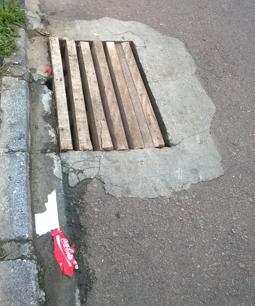 A foto acima foi enviada à coluna pela leitora Elmy Matsumura. Ela brinca que ficou “admirada pela criatividade e cidadania do executor da obra” na hora de construir um “bueiro ecológico”. Mas utilizar pedaços de madeira para cobrir o buraco na rua é irregular. A situação ocorreu na Rua Professor Leônidas Ferreira da Costa, no bairro Parolin, em Curitiba, entre as ruas 24 de Maio e Nunes Machado. Questionada, a prefeitura informou que “a tampa do bueiro será substituída imediatamente.”