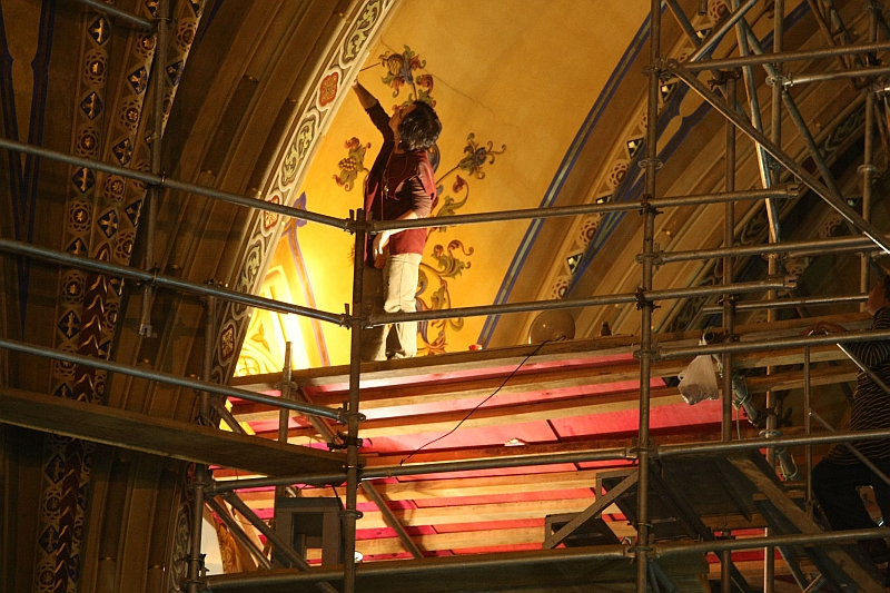 Quem passa pelas ruas do entorno da Catedral Basílica de Curitiba não deixa de notar que o prédio está em obras. É a terceira reforma por que passa a bela igreja construída em 1860 (as outras foram em 1975 e 1993), mas os trabalhos não se resumem à parte externa. Como mostra a foto, a estrutura interna também está sendo restaurada, e por equipes altamente especializadas. Os recursos vêm do "potencial construtivo", mecanismo que permite a transferência de recursos privados para a restauração de patrimônios públicos.