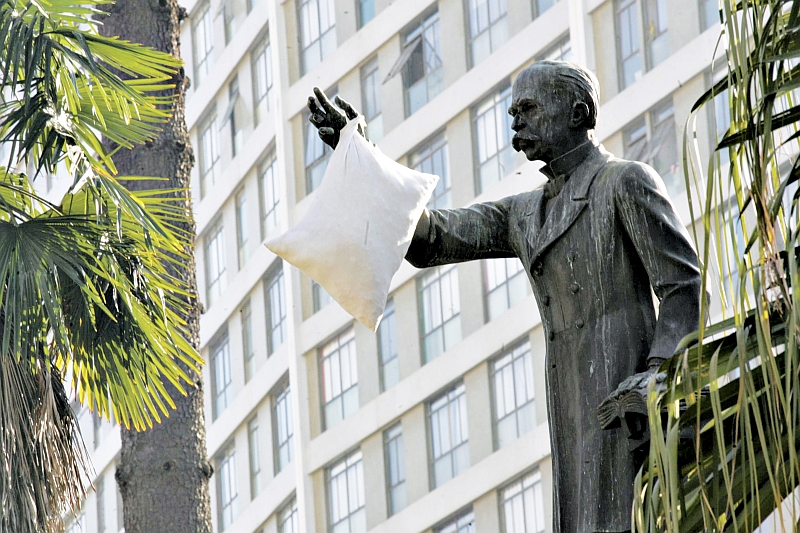 Uma das muitas estátuas da Praça Santos Andrade amanheceu ontem segurando um travesseiro, certamente colocado ali por algum gaiato. O que faz um travesseiro na praça? Essa é fácil: há muito que as praças centrais de Curitiba se transformaram em dormitórios de moradores de rua. Com a aproximação do inverno, está de volta a discussão sobre o papel dos albergues no abrigo dessas pessoas. Só vai para um deles, a FAS inclusive, quem estiver disposto. E os sem-teto não querem nem saber de abrigos.
