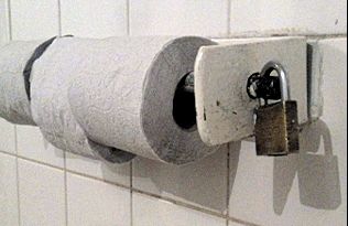 "Pobre país em que é necessário colocar cadeado no rolo de papel higiênico para não ser roubado". O comentário é do leitor que enviou a foto e retrata, de verdade, uma situação comum no país. Experimente deixar os rolos de papel sem cadeado, para ver se fica algum! Tirada em um posto de combustíveis na BR-277, perto de Guarapuava, a foto é mesmo de entristecer, e seu conteúdo, infelizmente, não é novo.