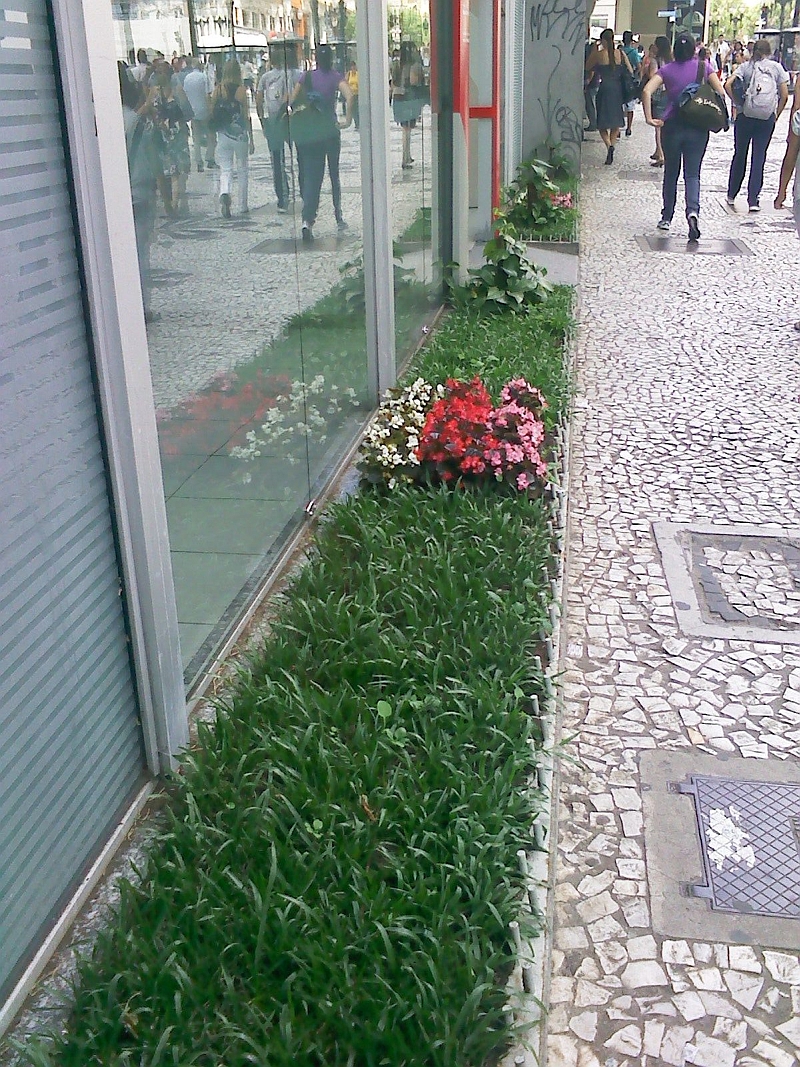 O canteiro não deve ter mais de 50 centímetros de largura e passa desaparecido para a maioria das pessoas que circulam pelo Calçadão da XV. Mas ali estão um belo gramado verde e tufos de flores, que dão vida a um espaço que, não fosse o jardim, certamente seria transformado em dormitório de moradores de rua. A iniciativa é de uma agência bancária e bem que poderia ser imitada por mais empresas e escritórios do centro.