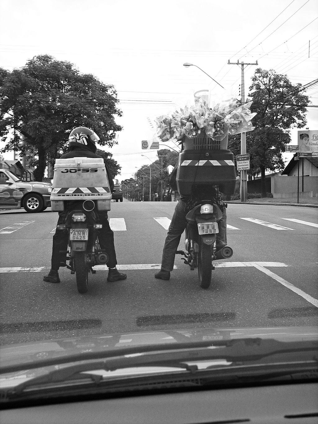 Sábado de manhã, pressa em arrumar o saçlão para o casamento, a formatura ou seja lá a festa que tenha sido programada. E as flores? Estão atrasadas. Nesse caso, a entrega deve ser feita de moto mesmo (foto). Motorista de um carro que seguia atrás da moto pela rápida do Cabral, leitora imaginou como aquelas flores chegariam ao destino. Será que as pétalas não se quebrariam? E a todo momento parecia que elas saltariam da caixa do motoboy.Conversa afiadaDesaposente-se