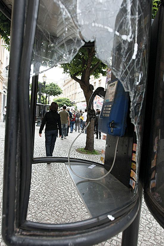 Alguns leitores podem dizer que chega de orelhão quebrado na coluna, e de fato já mostramos muitos. O objetivo, porém, é procurar entender por que esses telefones quebrados do Calçadão da XV não são consertados. Afinal, são de vidro e vidro, como se sabe, pode machucar as pessoas. Se as regras da Anatel determinam que a operadora ofereça orelhões, essas quebras deveriam estar previstas e os danos deveriam ser recuperados o quanto antes. Nem que seja usam outro material.