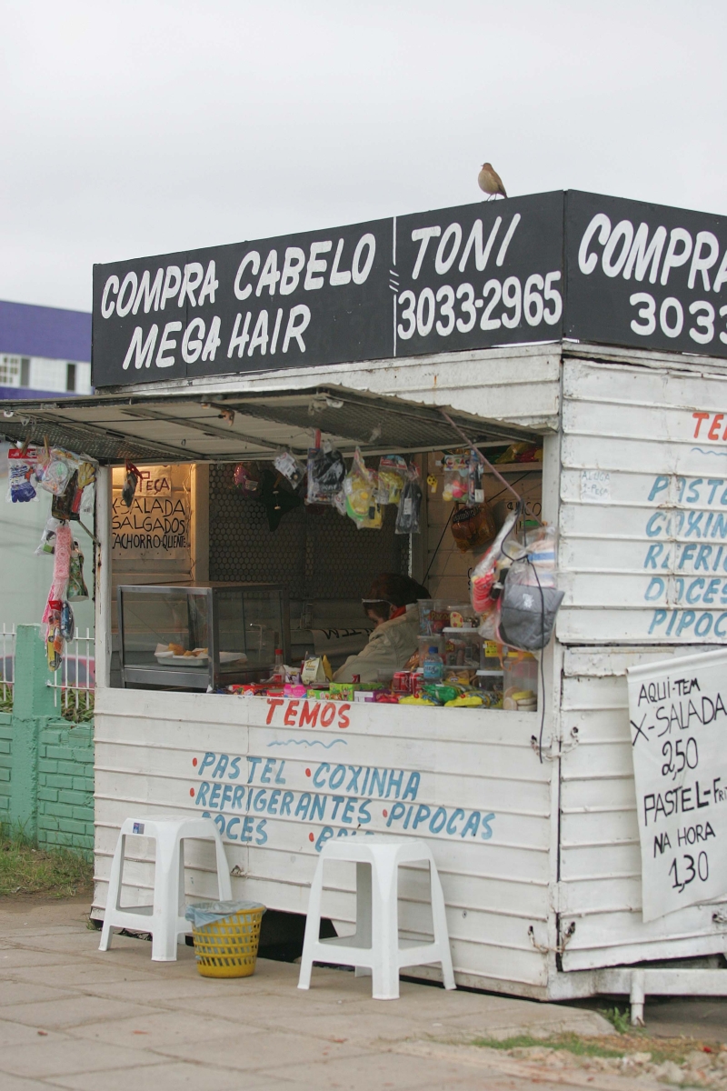 Uma banca em Pinhais chama a atenção de quem passa porque, além de vender pastéis, coxinhas, doces e refrigerantes, também compra cabelo e faz mega-hair. Fica evidente que o anúncio da compra de cabelos nada tem a ver com a banca; é uma propaganda que oferece um nome e um telefone. É óbvio que o corte de cabelo não será feito ali, e muito menos a operação de mega-hair. Mas, como o anúncio está sobre a barraca, a primeira impressão que fica é que o salgado poderia vir premiado. Meu sonho é ...