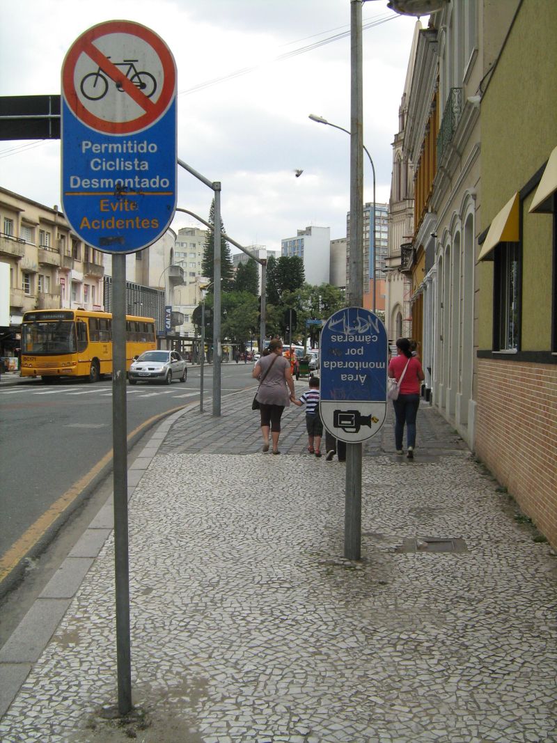 Faz uns quatro meses a coluna mostrou esta mesma cena, com uma placa de cabeça para baixo. Por que será tão difícil prender a placa na posição correta? É uma coisa que se conserta em alguns minutos, bastando ter à mão uma chave e um parafuso. Parece, no entanto, que a sinalização ficou assim "de birra". Caso o pessoal da prefeitura não saiba onde está o problema, a praça ao fundo é a Tiradentes, e a torre que se vê na lateral direita é da Catedral Basílica.