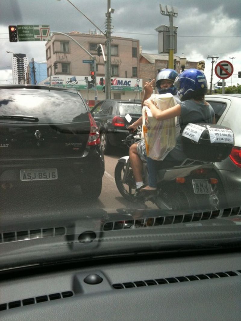 Com os dois filhos pequenos dentro do carro, leitora viveu o drama diário de muitos motoristas em sua relação com os motociclistas exatamente como descreve a nota "Badboys de moto", que saiu na coluna de Reinaldo Bessa na quarta-feira. A leitora viveu e fotografou o gesto obsceno, praticado por um motoqueiro que havia chutado seu carro. "Eu estava com meus dois filhos, que ficaram superassustados. Tive ainda que explicar por que, em vez do motoqueiro pedir desculpas, nos agrediu com este gesto obsceno", relatou a cidadã.