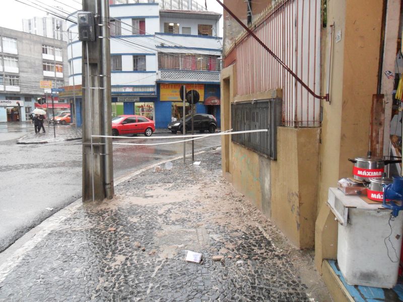 A queda de parte do reboco da torre da Igreja do Guadalupe sobre a calçada deve ter sido efeito da chuva, mas o problema é que ninguém tomou providência para evitar um acidente, pelo menos até as 13 horas de ontem. Aí, o dono de um salão de cabeleireiros vizinho (no comecinho da Rua Pedro Ivo) colocou uma fita para evitar que alguma coisa caísse sobre um passante desprevenido. Em tempo: os bombeiros foram avisados e nada.