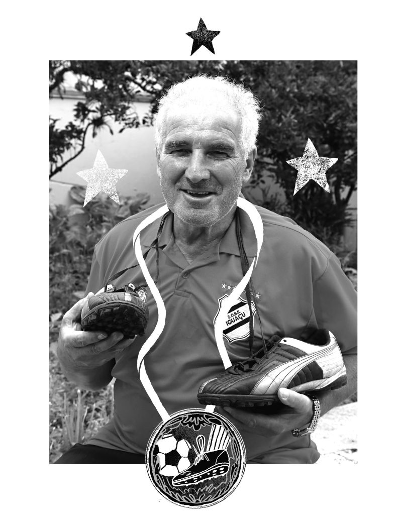 Ganhava 80 contos, o dobro do que o Coxa ofereceu depois de ver o galalau de 1,78 metro e porte de lutador de telecatch brilhar no campeonato juvenil, o "segundo quadro", jogando, claro, pelo Iguaçu. Ficou com quem lhe deu o maior passe, reservando as horas vagas para times como o Flamenguinho e o Pinheirinho. Jura que não se arrependeu e que é muito bom ser um ídolo de bairro. "Lá vai o artilheiro", apontam os vizinhos. É a glória.