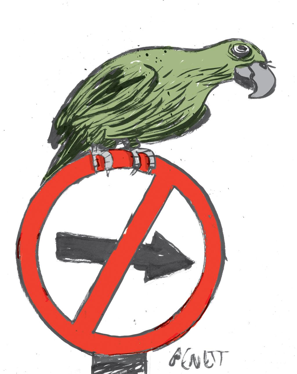 E é por isso que o papagaio do lar é um baralho que nunca se deslacra, um pássaro engavetado. Nasceu para decorar não só os nossos ombros, mas também a letra e a melodia de certos hinos, patrióticos ou futebolísticos. Dele se cobra a reprodução de nossas paixões, a imitação de nossas gracinhas. Mas o papagaio não quer ser um mero dispositivo de repetição, um escaninho de plumas onde guardamos a cópia de nossos amores. O papagaio quer o céu.