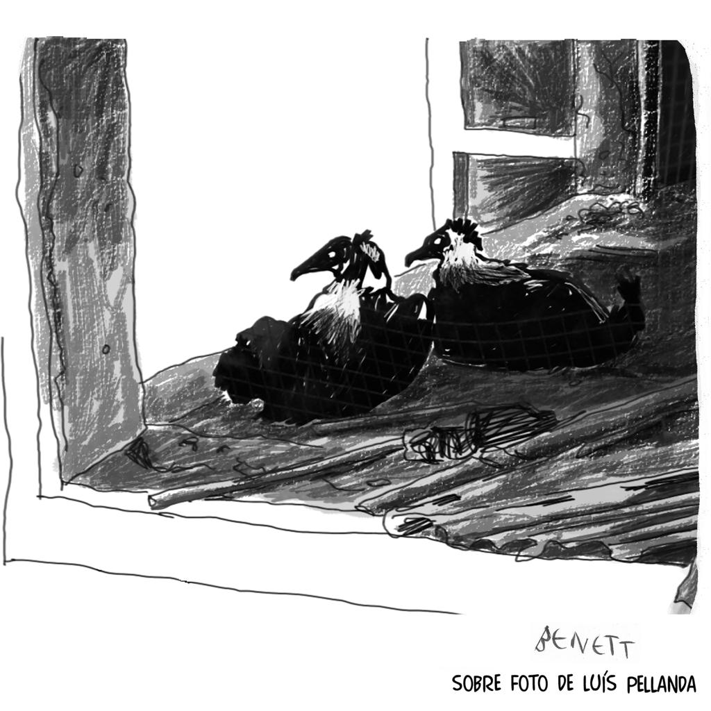 Gosto deles, não é segredo. Apenas temo pelos seus impulsos. São carniceiros, afinal, e agora têm cercado, com alguma insistência, o ninho que um casal de papagaios improvisou numa fresta de concreto, no alto do prédio da OAB. Se os papagaios gritam, às sete da manhã, é sinal de que está tudo bem. Se ficam quietos, é porque estão tensos. Aí vou à janela, checar o silêncio das aves, e descubro os urubus rondando o ninho alheio. Grito com eles, xô, saiam daí, e os bichos, em nome do nosso bom relacionamento, voam de volta ao seu reduto, emburrados feito crianças.