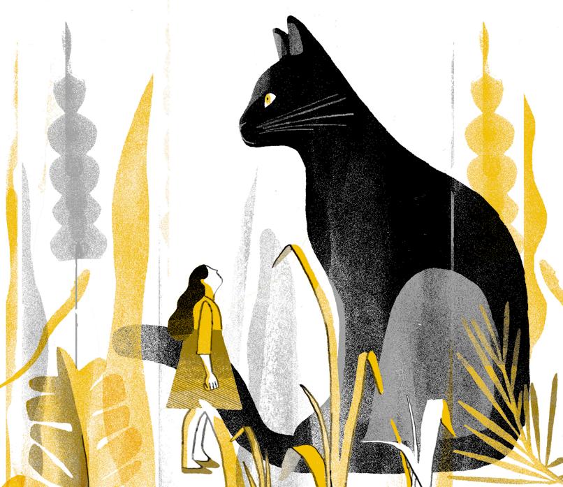 Miroslau, o gato preto e briguento, aparecia na porta da cozinha. Tinha também um apelido, Miro. Cada dia surgia mais arrebentado. Um dia apareceu sem uma orelha. Noutro, sem um olho. Estava sempre machucado. Eu via Miro como um felino grande e encorpado, uma fera negra. Vai ver era um bichaninho mirrado, cujo tamanho era inflado pela minha pequenez de criança ou pela intimidade que havia entre nós. Tiro essa explicação do poema do Manoel de Barros: “A gente descobre que o tamanho das coisas há de ser medido pela intimidade que temos com as coisas”. Miro era parte do meu mundo íntimo, assim como o quintal. Eram gigantes para mim porque não tinham apenas o tamanho físico; eu atribuía a eles outra dimensão, que espelhava minha imaginação, minha curiosidade e até minha empatia. Gato e quintal cresciam com a dimensão que não era só deles, era minha também.