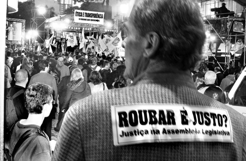 Com prazer ouvi, fascinado, as verdades irrefutáveis dos oradores que se seguiram, na cobrança sobre os desmandos realizados contra o erário, dentro daquela Casa de Leis. O discurso contundente do respeitável René Dotti, acompanhado, que foi, no assunto por um grupo de outros oradores importantes na sociedade paranaense e brasileira. A presença maciça do povo mostrou a vontade de todos, presentes ao ato, em ver a justiça ser executada contra os desmandos dos políticos implicados.