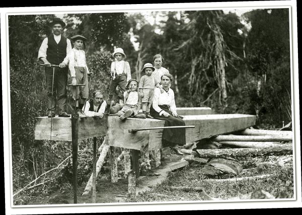 São as seguintes as fotografias que ilustram a Nostalgia de hoje: a imagem de uma família de colonos preparando a madeira com a qual deveriam construir a sua moradia. A foto é do início dos anos de 1900 no vale do Rio Iguaçu. Uma vila em formação entre vasto pinhal na região do mesmo vale, em 1905. Na terceira imagem, temos um grupo de colonos participando da construção da igreja em Prudentópolis na primeira década de 1900.