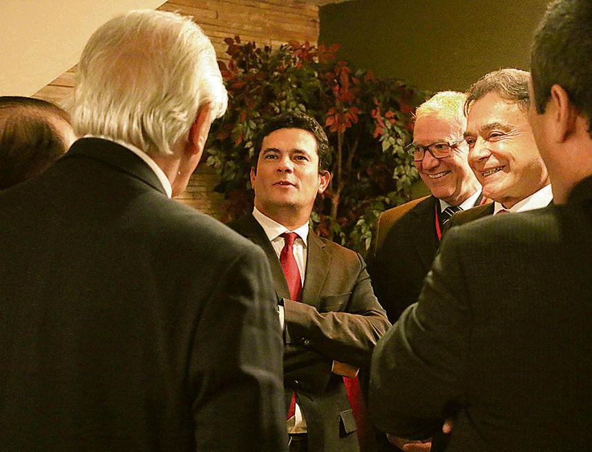 O juiz Sérgio Moro atraiu todas as atenções no 59º jantar da Boca Maldita, na noite de domingo, no Hotel Four Points by Sheraton, durante o qual recebeu a comenda de Cavalheiro da confraria. Outra estrela do evento foi o ministro do Supremo Tribunal Federal Luiz Edson Fachin. De tão assediado para fotos, Moro foi conduzido ao lobby-bar até que a cerimônia começasse para ter mais privacidade. Lá, conversou com um pequeno grupo de membros da Boca, entre eles o senador Alvaro Dias, orador do evento, e os presidentes da Fiep, Edson Campagnolo, e da Fecomercio, Darci Piana.